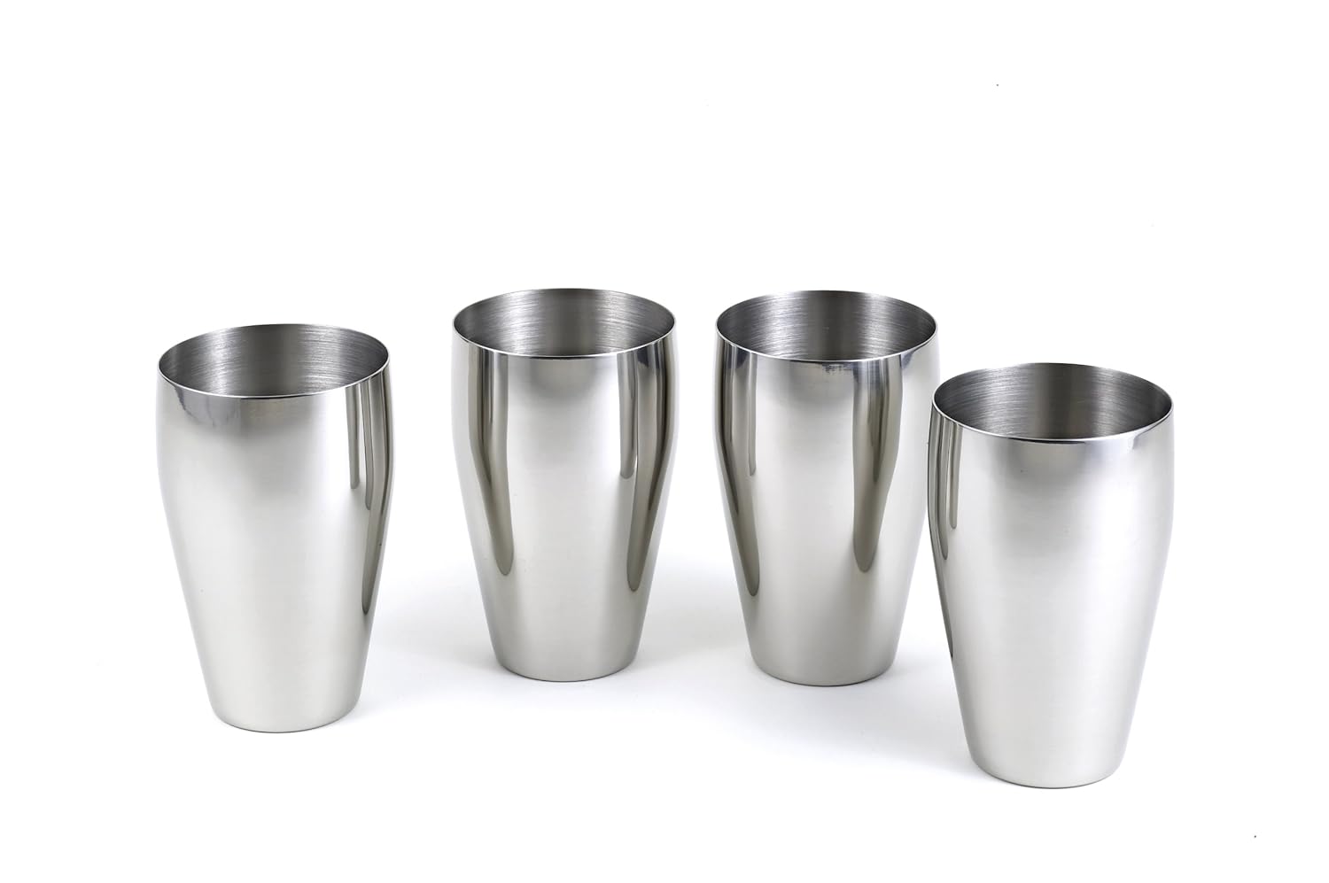 Whether for water or for beer, enjoy the simple pleasure of drinking with this stylish stainless steel drinking glass. StainlessLUX 773Double walled Stainless Steel Drinking Glasses, 12-Ounce Cup, Set of B005K96XE8.