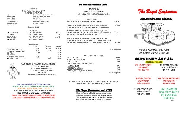 Emporium Grille, rated of on TripAdvisor and ranked of 3restaurants in. Westchester Bagels - Menu - The Bagel Emporium Just bagels?